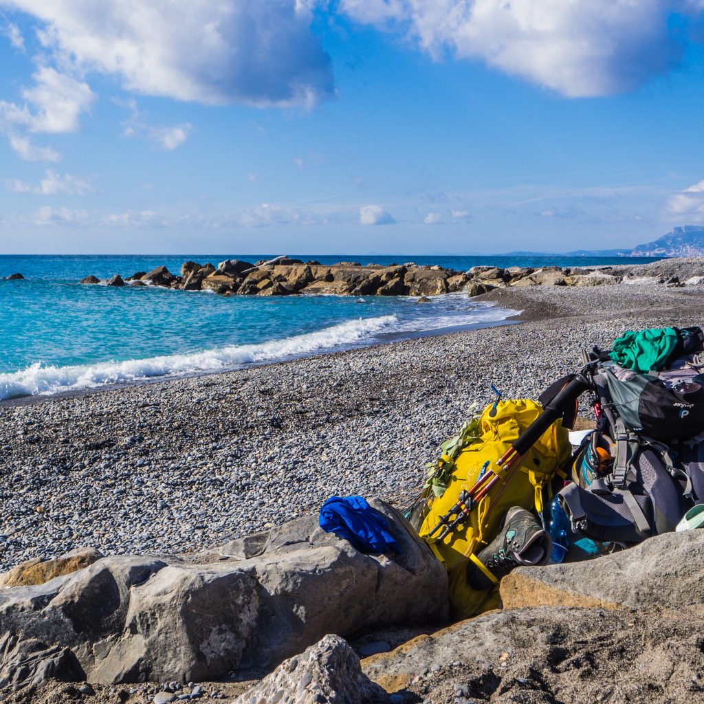 Mit der letzten Etappe genießen wir noch einmal die schönen Hügel des ligurischen Hinterlandes, bevor wir uns ins hektische Treiben der Küstenstraße begeben. Falls jemand in Erwägung zieht noch einen Tag länger zu bleiben: Ich rate entschieden ab. Denn so schön und abwechslungsreich die ligurischen Berge auch sind, so hat die komplett zugebaute Mittelmeerküste einem Naturliebhaber nichts zu bieten. Wir wählen eine Route, die sich dem urbanen Treiben möglichst lang entzieht und machen einen kleinen Schlenker durch den Nationalpark San Romolo. Dieser zieht sich in langem Bogen bis 2 km an die Küste heran. Dann verlassen wir die Natur und kehren in die Zivilisation zurück. Unsere Unterkunft in Bordighera liegt direkt am Strand sodass wir den Nachmittag unsere Blasen kühlen und bei hoffentlich gutem Wetter noch eine Badesession einlegen können.