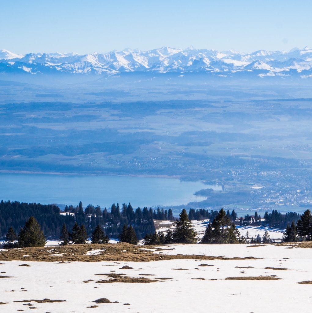 Während im Hochgebirge noch Winter herrscht kann man auf einer Jura-Tour bereits im April den Frühling geniessen. Bei gutem Wetter sind die Aussichten von den Vogesen bis zum Mont-Blanc-Massiv einzigartig.