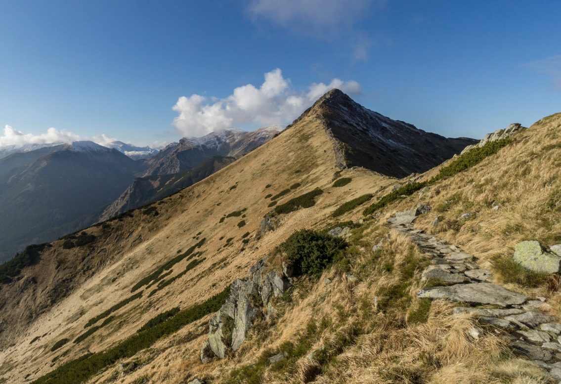 Der Grenzkamm zwischen Polen und der Slowakei zieht sich rund 10 km von Ost nach West auf recht einfachen Wanderwegen. Die Erreichbarkeit ist mit der Bergbahn ab Kuznice für viele Bergtouristen deutlich gemütlicher geworden. Dies hat aber zur Folge dass sich gerade um den Berg Kasprowy Wierch (1987 m) viele Wanderer aufhalten. Wir umgehen diesen „Hotspot“ im Westen.