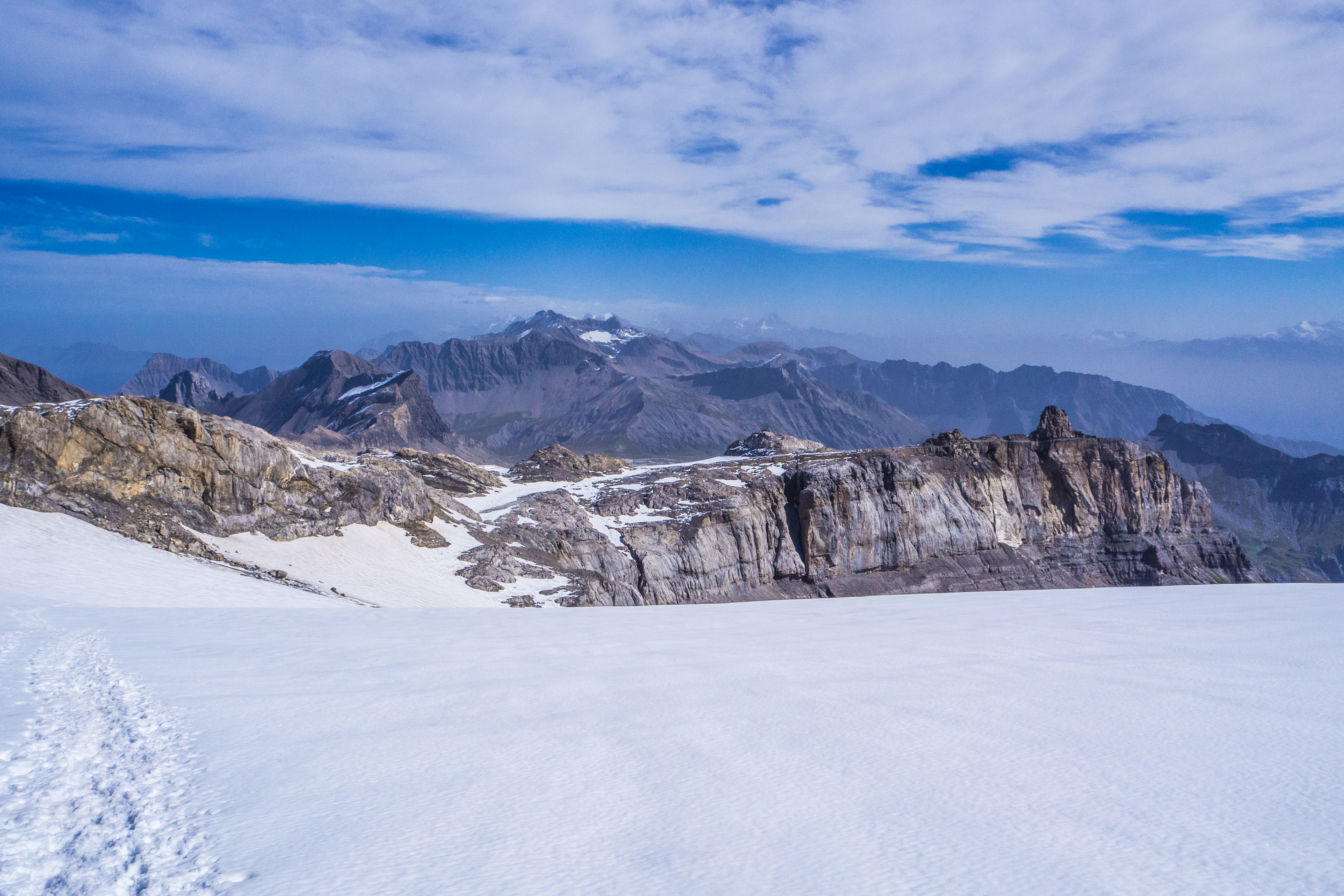 Anschliessend folgt der mässig steile Anstieg in den Homattupass. Über den recht spaltenarmen Homattugletscher steigen wir weiter in den Breithornpass.