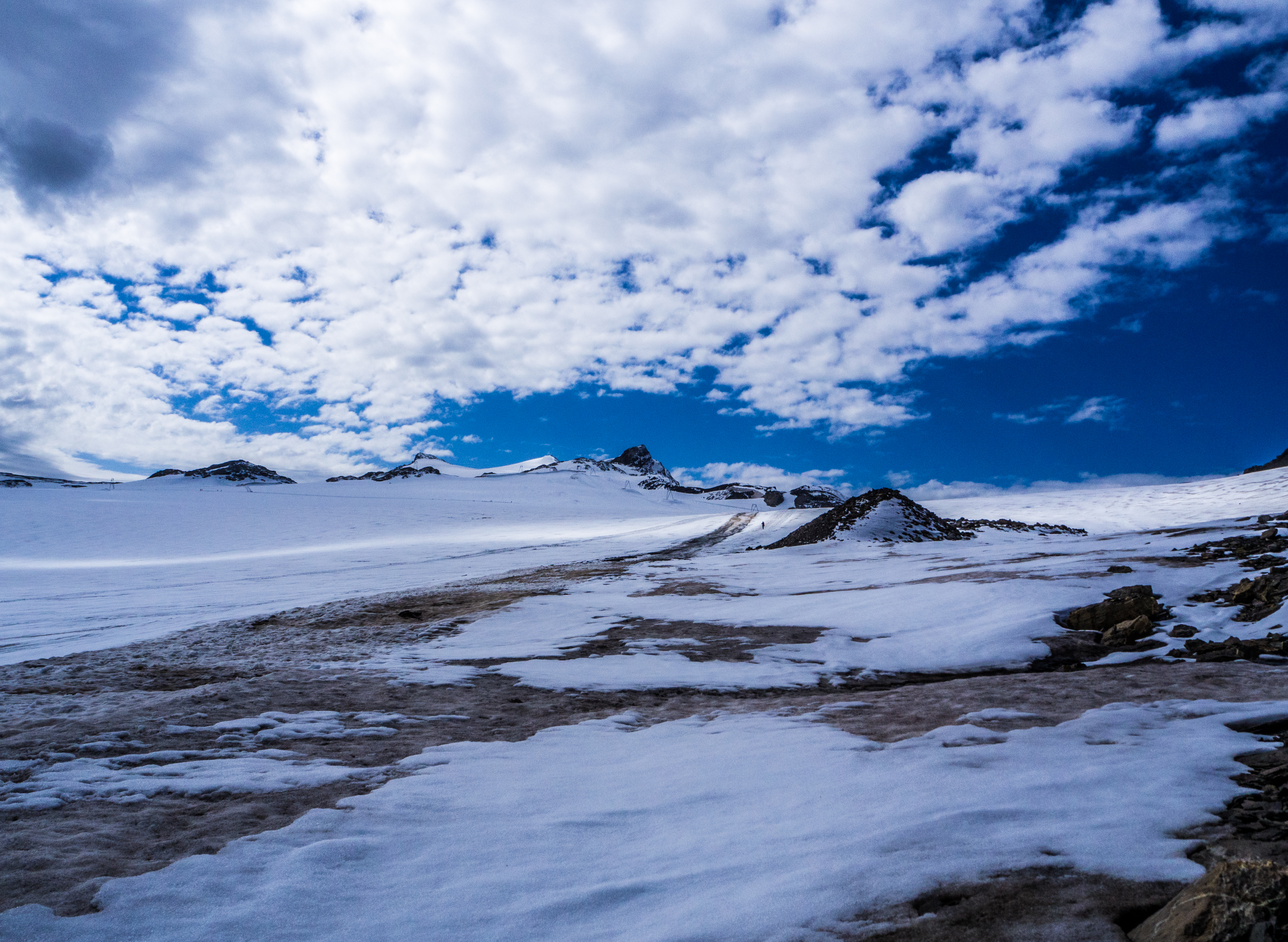 Vom Simplon-Hospiz starten wir zunächst in südlicher Richtung die Hänge hinauf gegen den Wegpunkt 2361. Hier folgt nun eine heikle Querung in den Ausläufern des Hübschhorn Nordgrats. Das Gelände ist hier relativ steil und braucht stellenweise gute Konzentration.